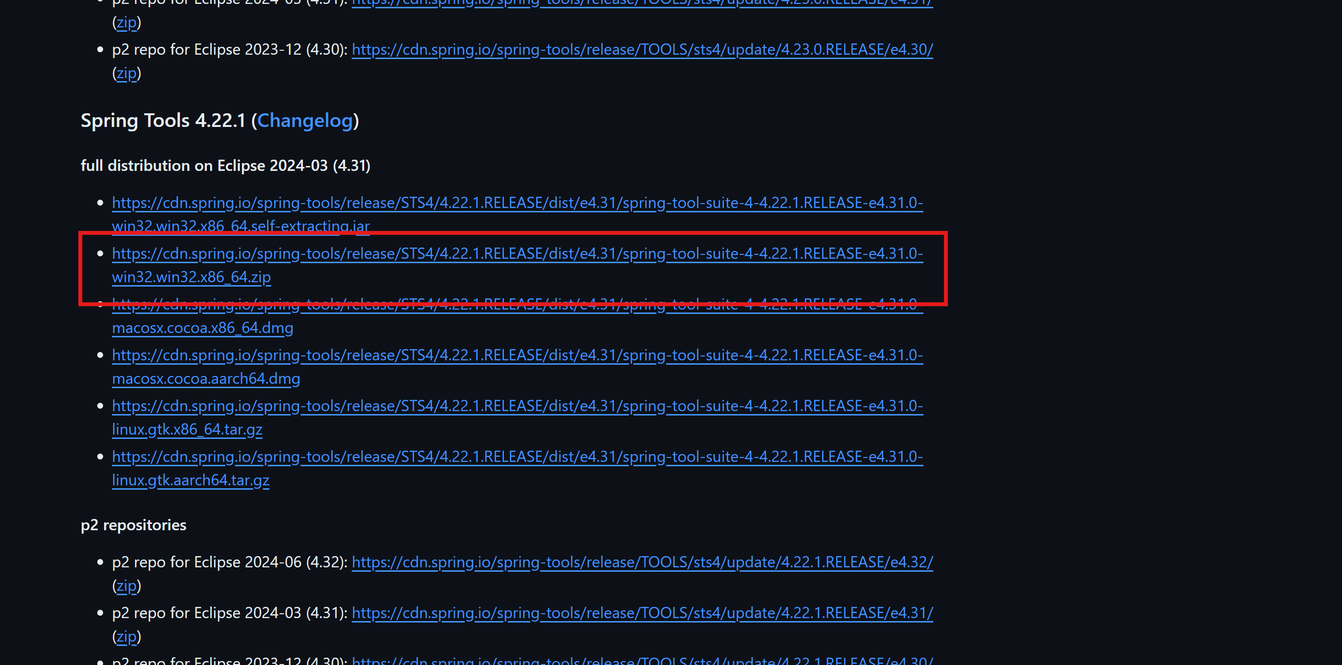 저는 Spring Tool4 for Eclipse를 다운받을려 했지만 제가 원하는 버전은 4.22.1 입니다.