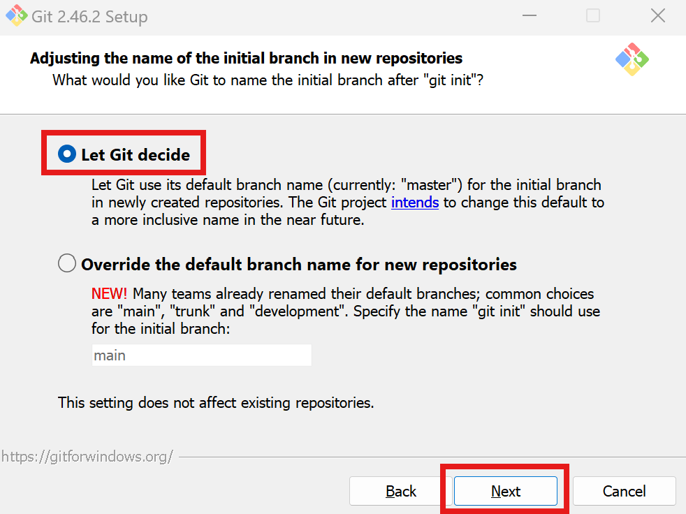 2. Override the default branch name for new repositories