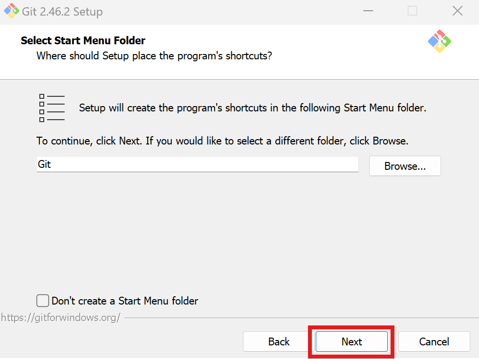 원하지 않을 경우 Don't create a Start Menu folder 선택해주세요.