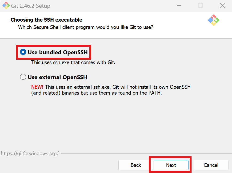 1.Use bundled OpenSSH (체크)
