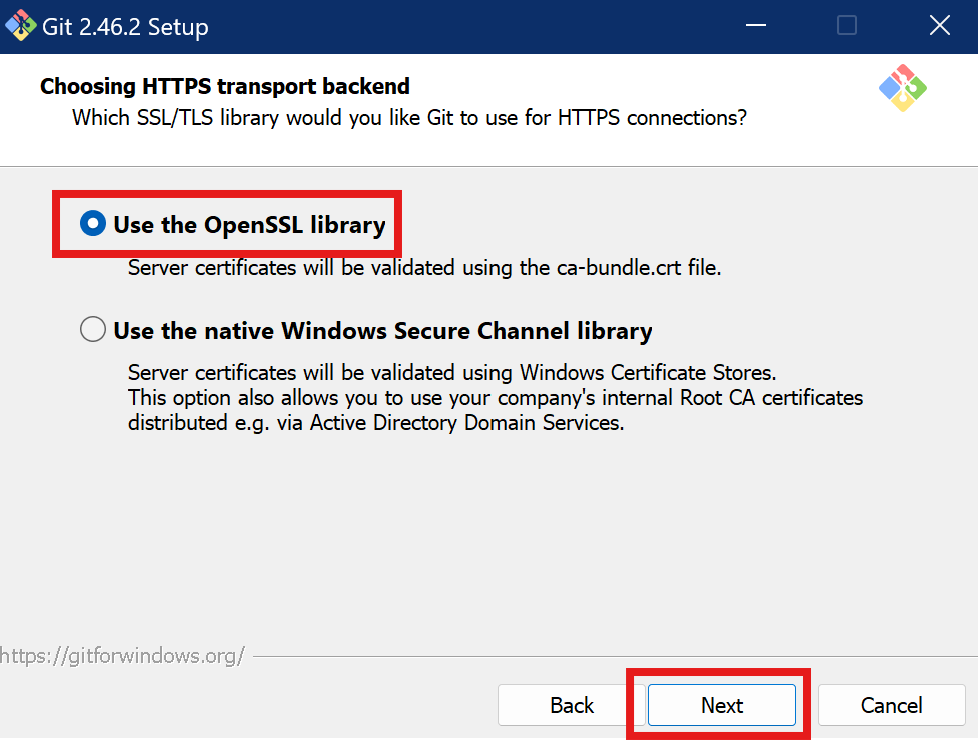 - Git이 내장된 Windows Secure Channel 라이브러리를 사용하여 HTTPS 연결