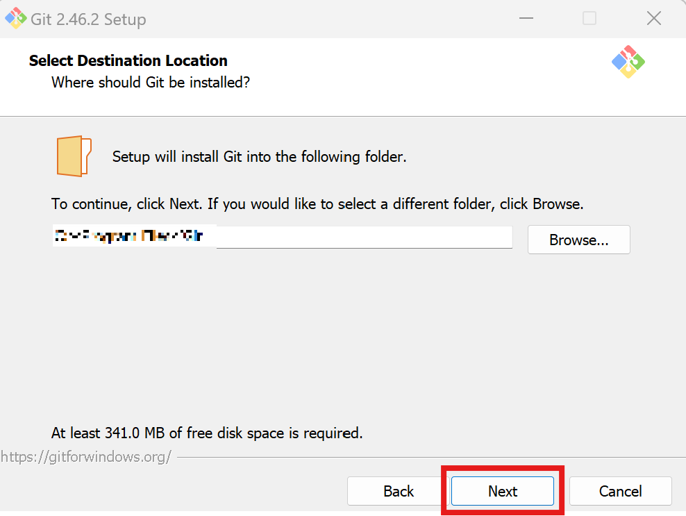 GIT 경로 설정 후 Next 클릭