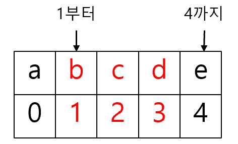 "bcd"만 출력하고 싶으면 substring(b,d) 일거 같지만 실제론 substring(b,e)로 해야합니다.