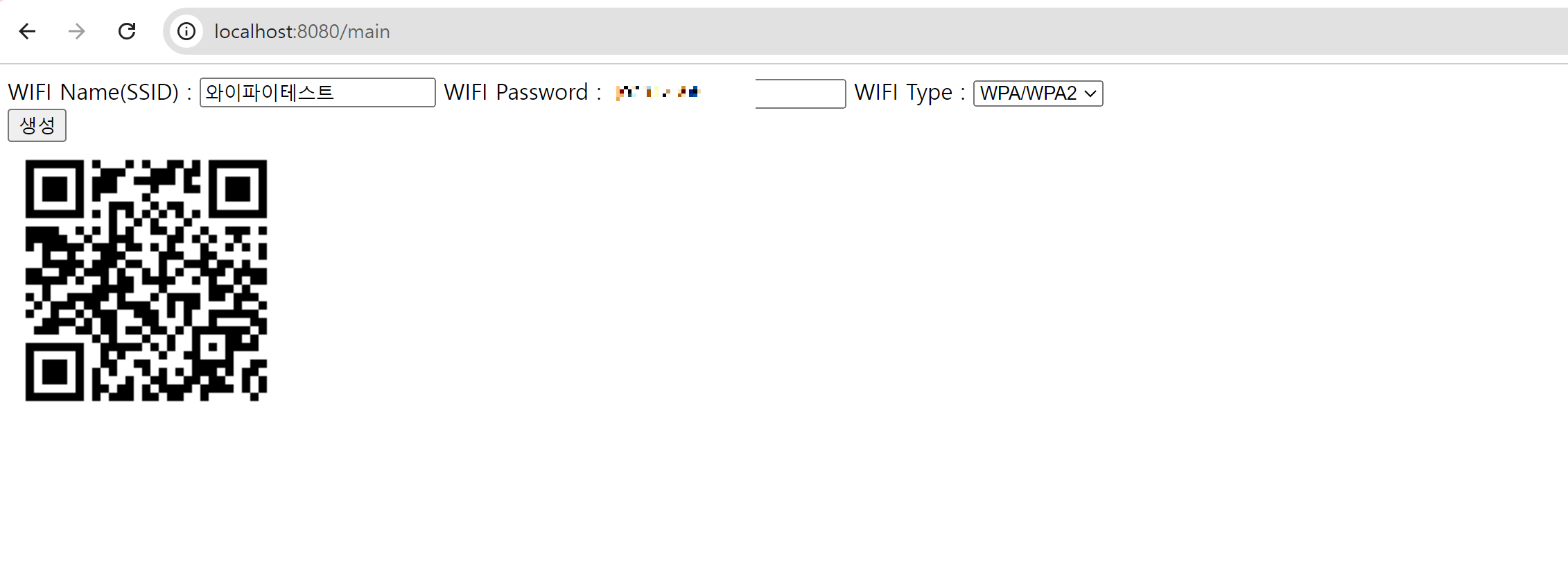 WIFI 정보를 넘기는 화면을 구현하셨다면 QR코드를 생성하는 Controller를 작성해야합니다.