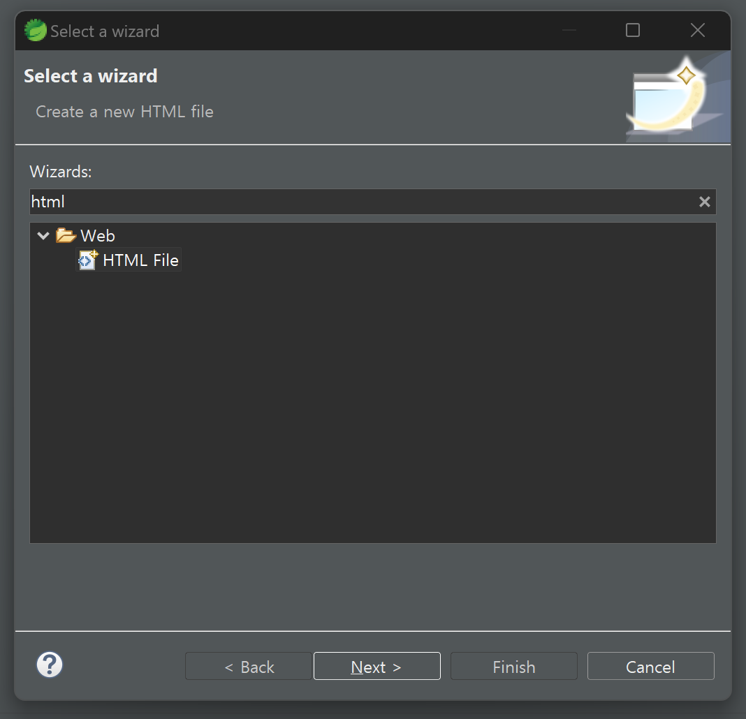 파일을 생성할 폴더 클릭하고 Ctrl+N을 누르면 Select a wizard 창이 나오는데요.