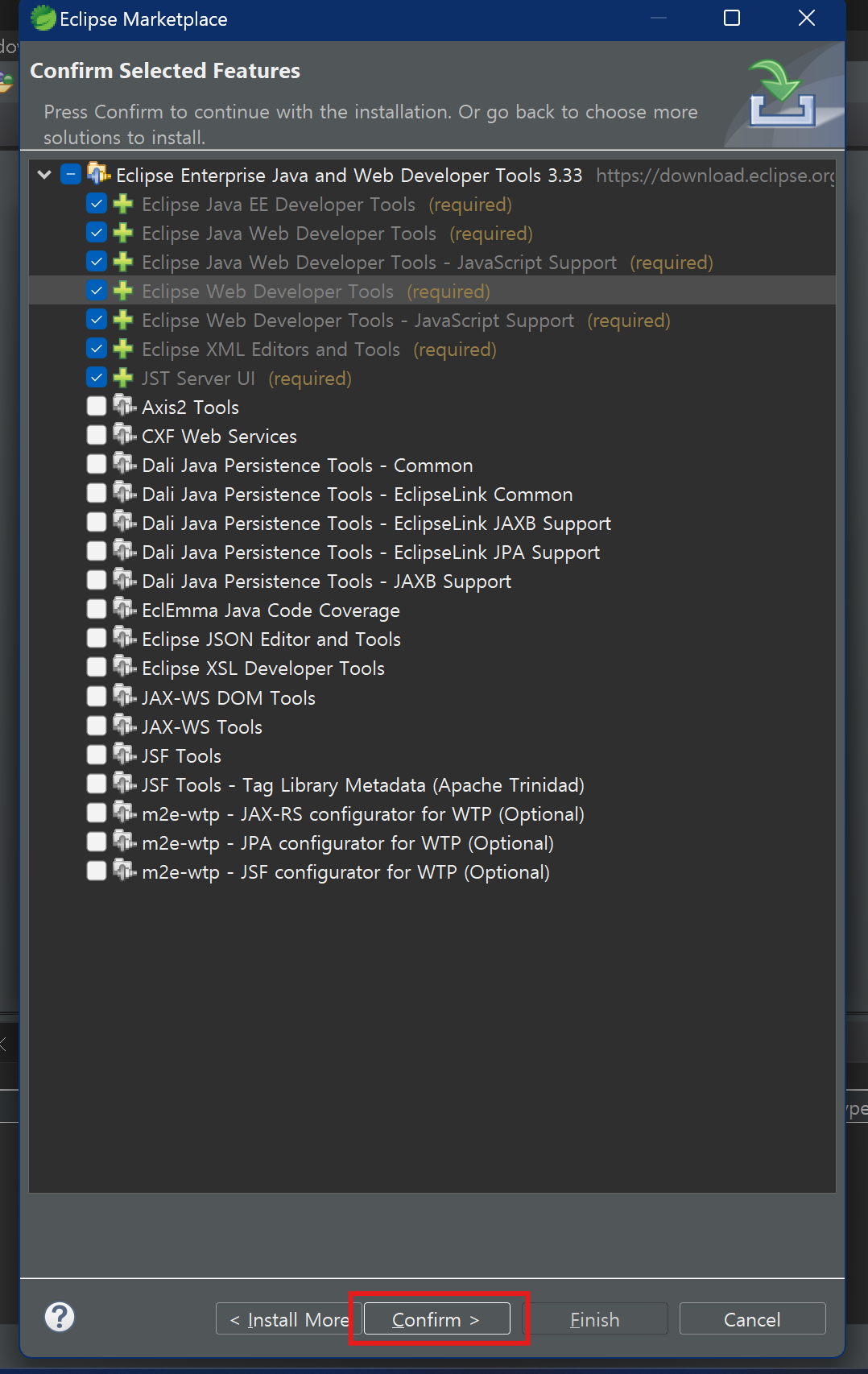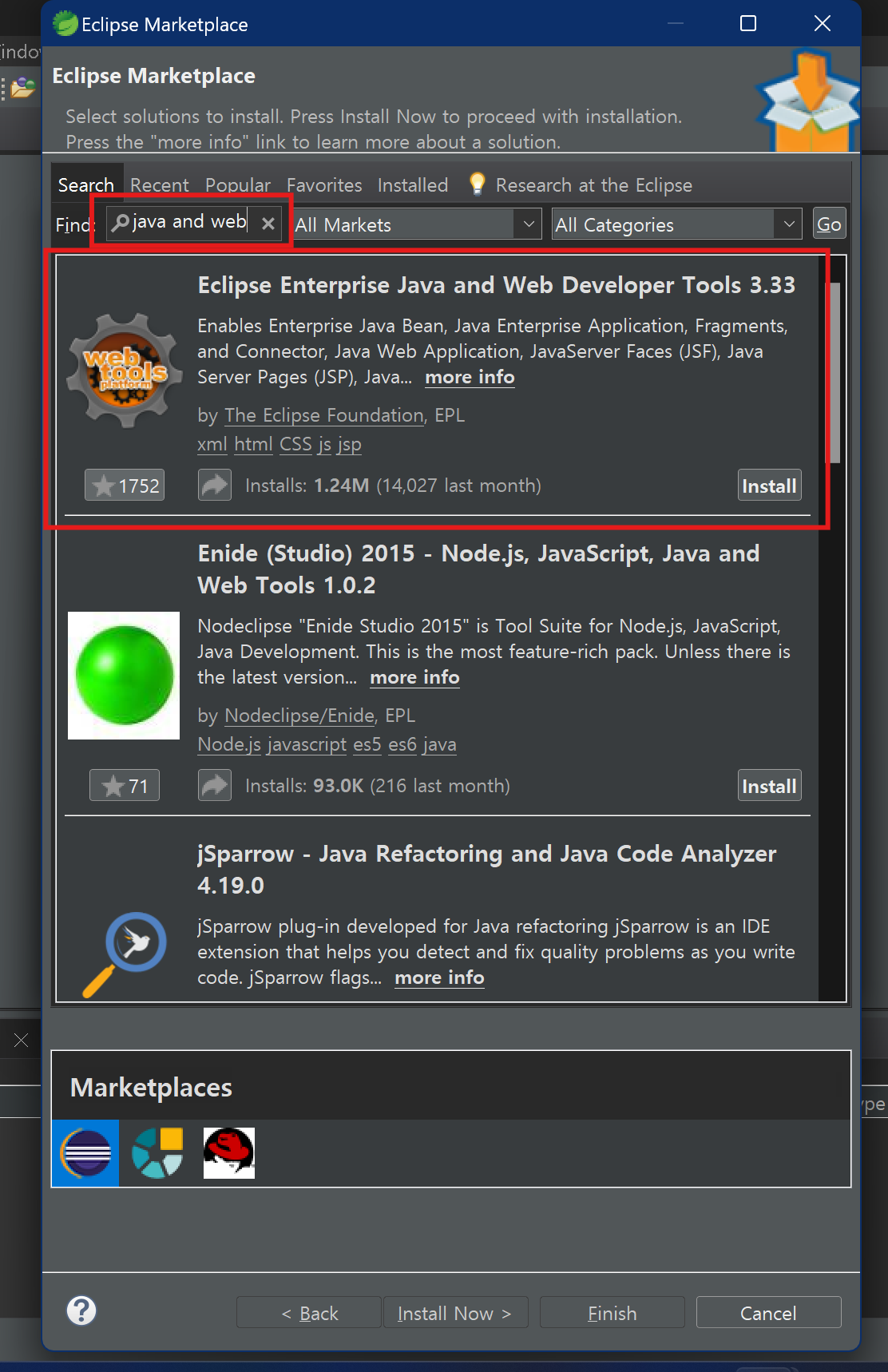 'java and web'을 검색하면 'Eclipse Enterprise Java and Web Developer Tools'가 나올텐데요.