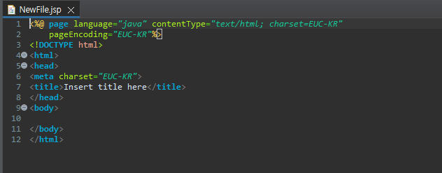 저장 후 JSP 파일을 생성하는 charset이 UTF-8로 수정된걸 확인 할 수 있습니다.