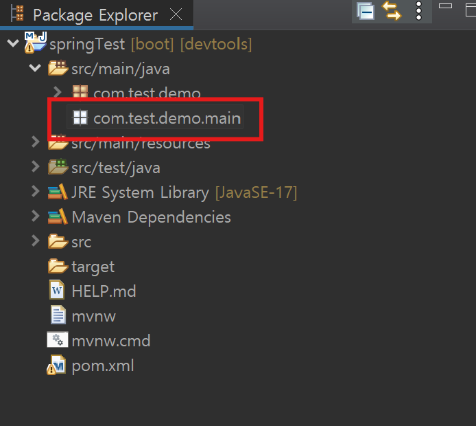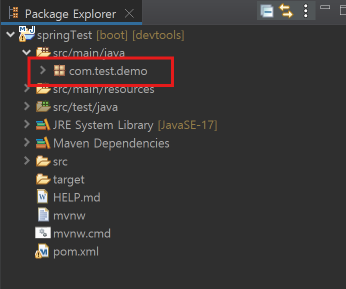 src/main/java 폴더를 보시면 com.test.demo 라는 패키지가 있는데요.