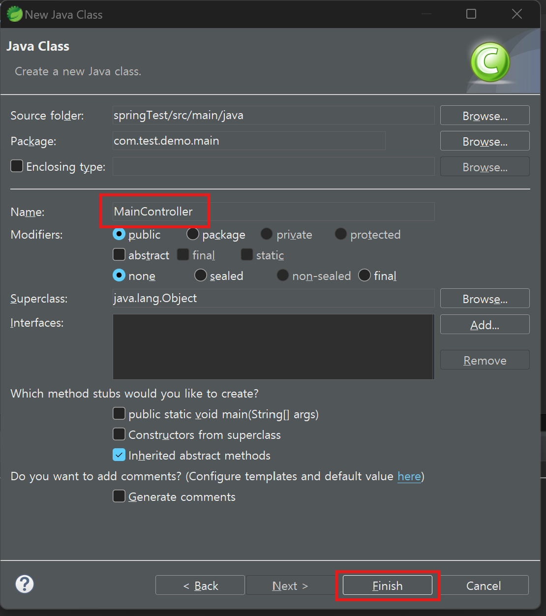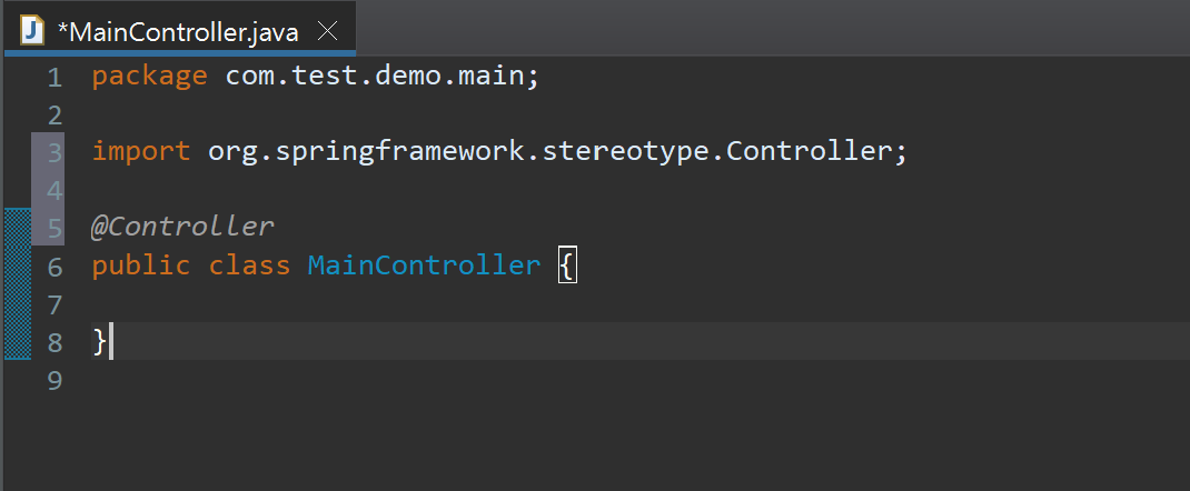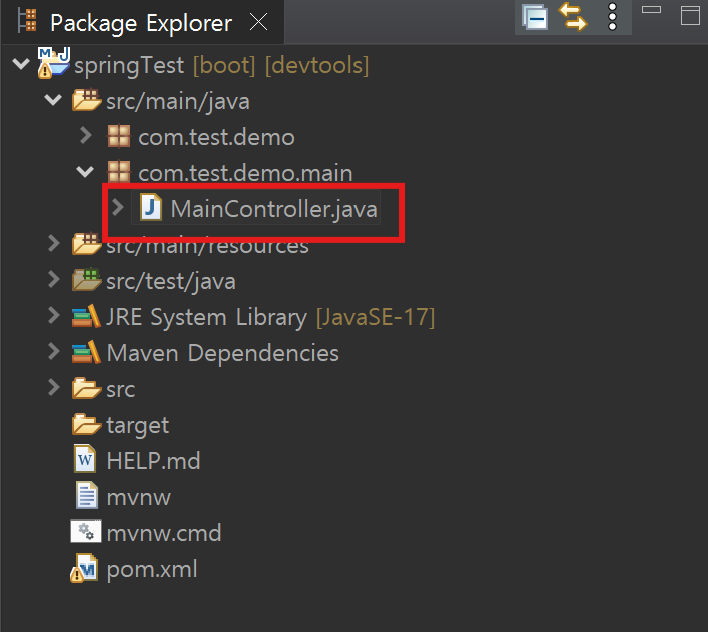 생성한 com.test.demo.main 패키지에 MainController.java 파일을 생성합니다.