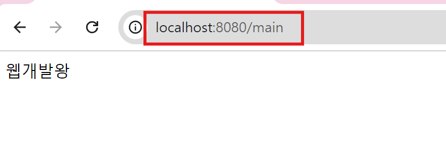 인터넷 브라우저에서 'localhost:8080/main' url을 입력하면 test.jsp에 작성한 요소가 화면에 보입니다.