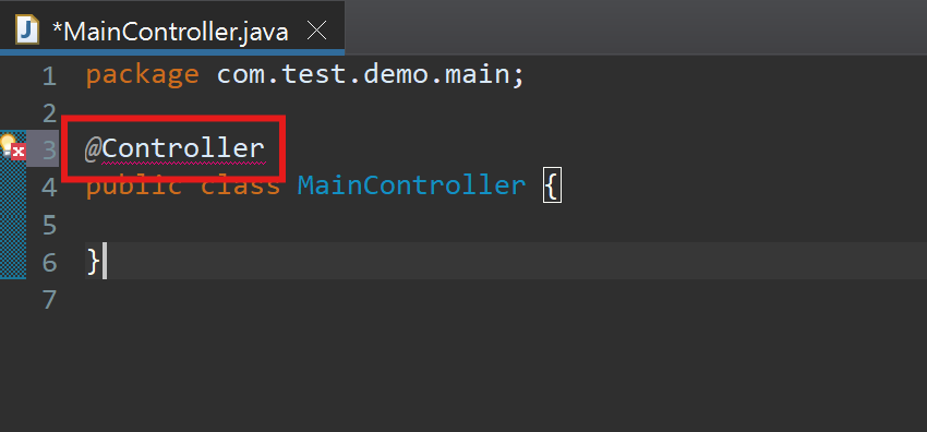 그 문장을 클릭하면 빨간색 줄은 없어지고 '@Controller' 가 회색으로 바뀔겁니다.