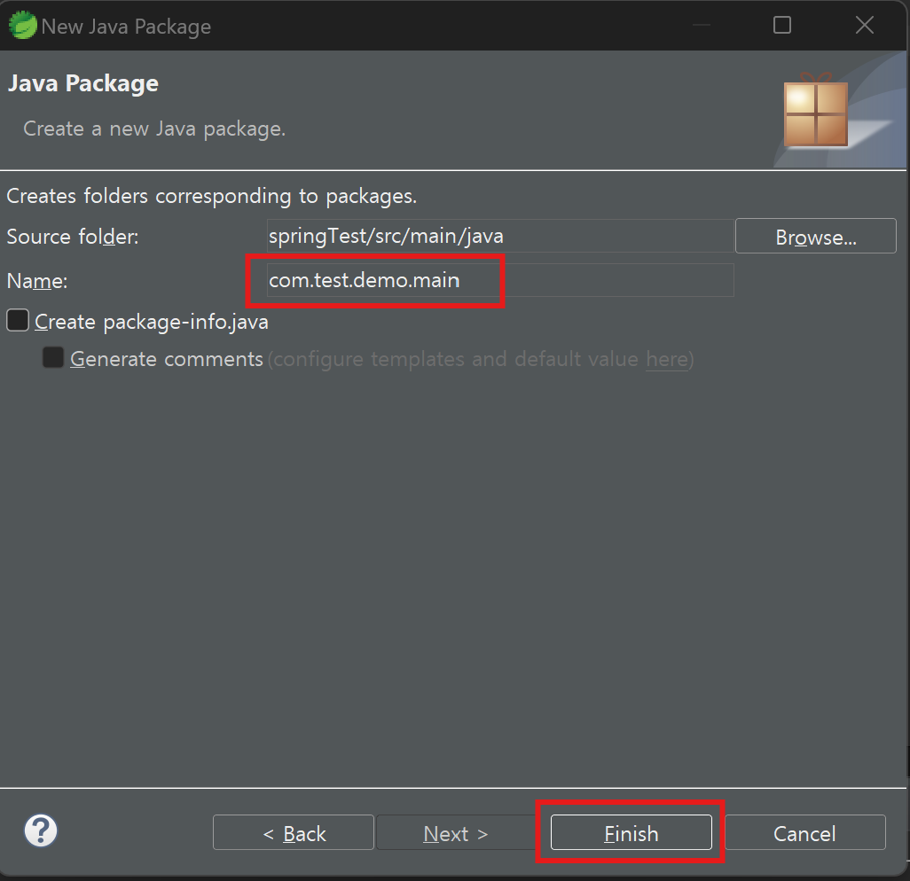 그 하위에 com.test.demo.main 이라는 패키지를 생성해줍니다.